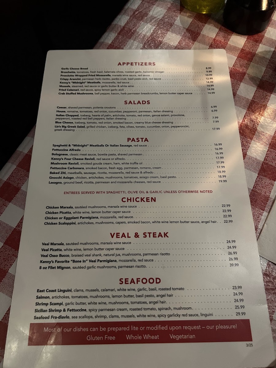 Notably, Kenny's takes pride in accommodating dietary restrictions, offering gluten-free adaptations of nearly their entire menu. The inviting atmosphere is complemented by attentive service, ensuring a memorable dining experience. Whether you choose a hearty Italian Club Sandwich or a classic Chicken Scaloppini, Kenny's promises fresh ingredients and bold flavors, making it an essential visit for Italian food lovers. Join the community of satisfied diners who keep coming back for more!