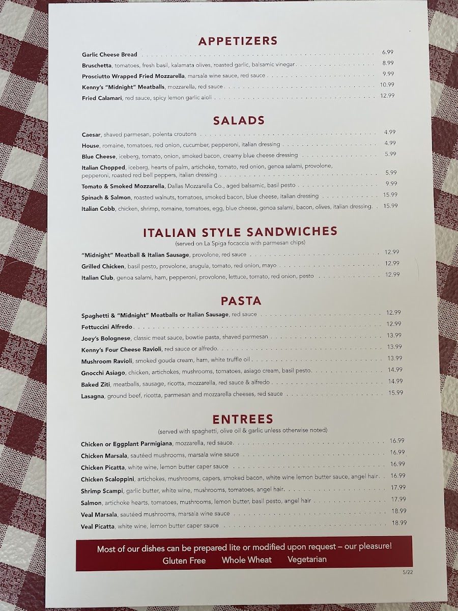 Welcome to Kenny's Italian Kitchen, a hidden gem nestled in the heart of Dallas. This Italian restaurant boasts a diverse menu brimming with delectable options, perfect for any palate. Begin your culinary journey with their Garlic Cheese Bread or indulge in the savory Prosciutto Wrapped Fried Mozzarella. For mains, the Chicken Parmigiana and Sicilian Shrimp Fettuccine have won rave reviews, with customers like Madeline praising the unforgettable lasagna.